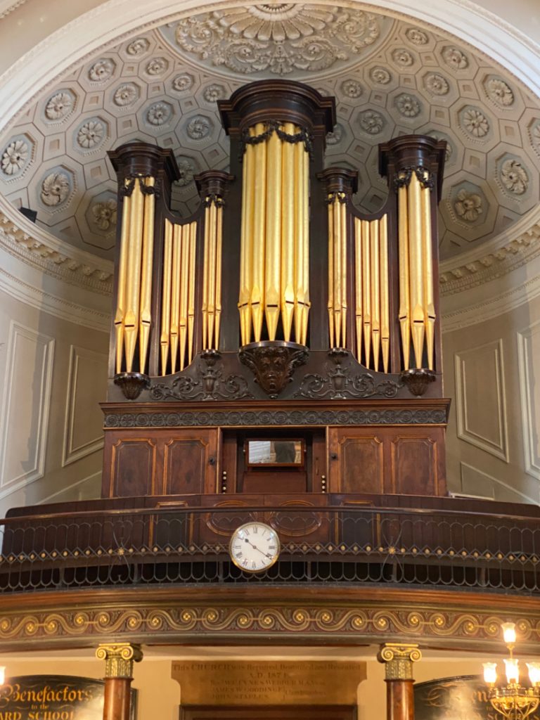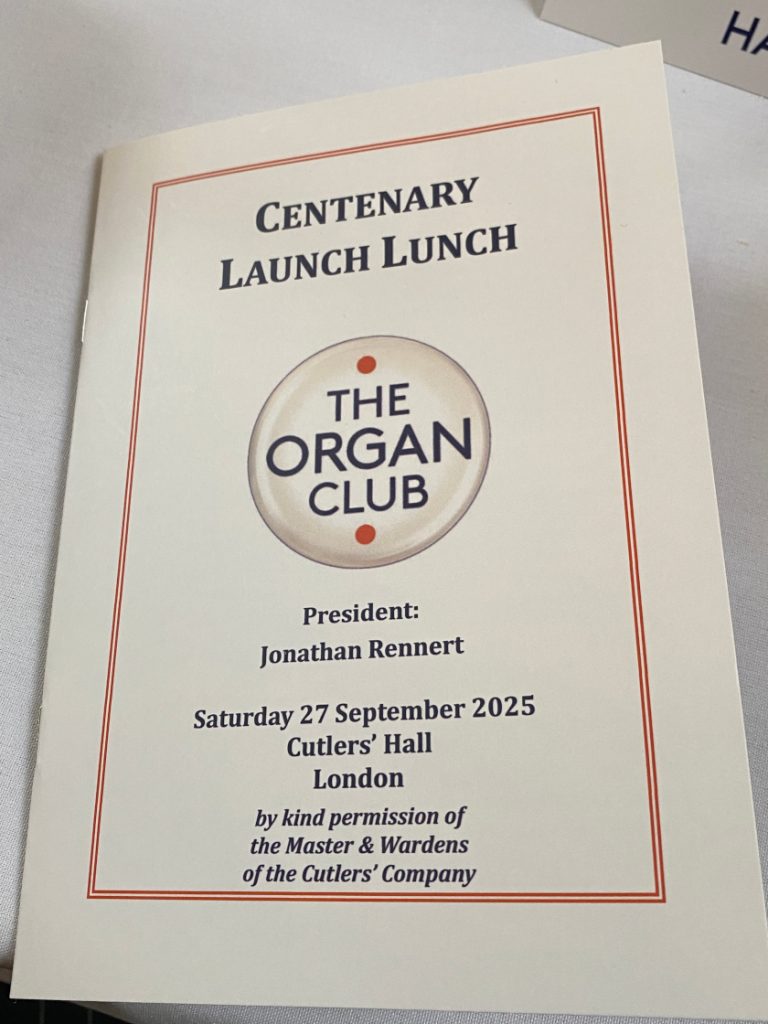 On Saturday 27th, the Organ Club launched plans for 2026 – its Centenary Year – during a splendid day in the City of London. Starting by visiting St Botolph, Aldersgate, the only City church organ never visited by the Club before (where its Samuel Green case impressed us somewhat more than the ailing organ within), we moved to Cutlers’ Hall for a magnificent Luncheon, where Michael, Lord Berkeley, was the well-received speaker.