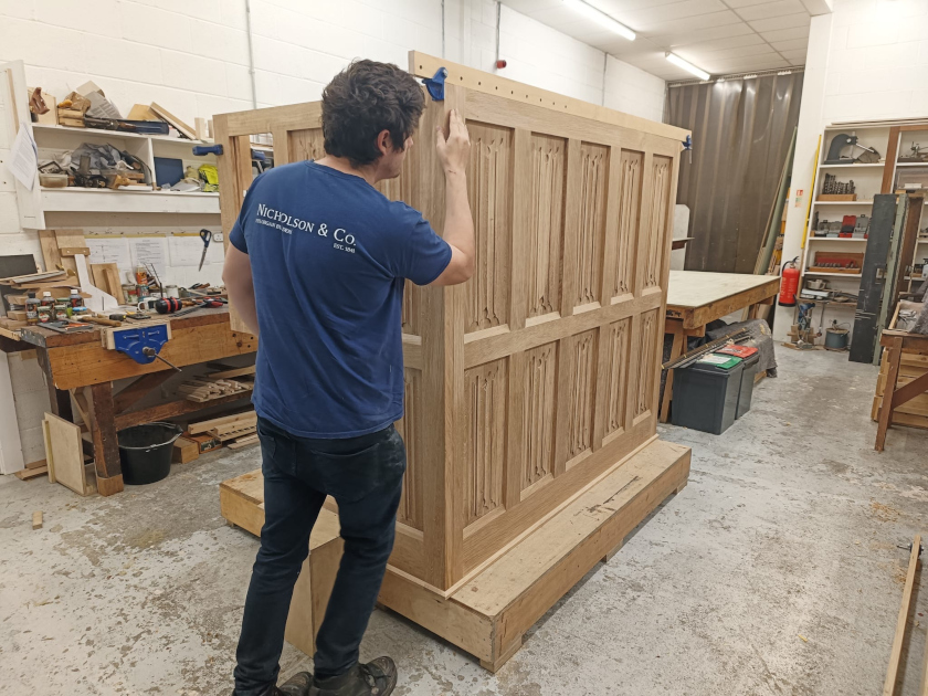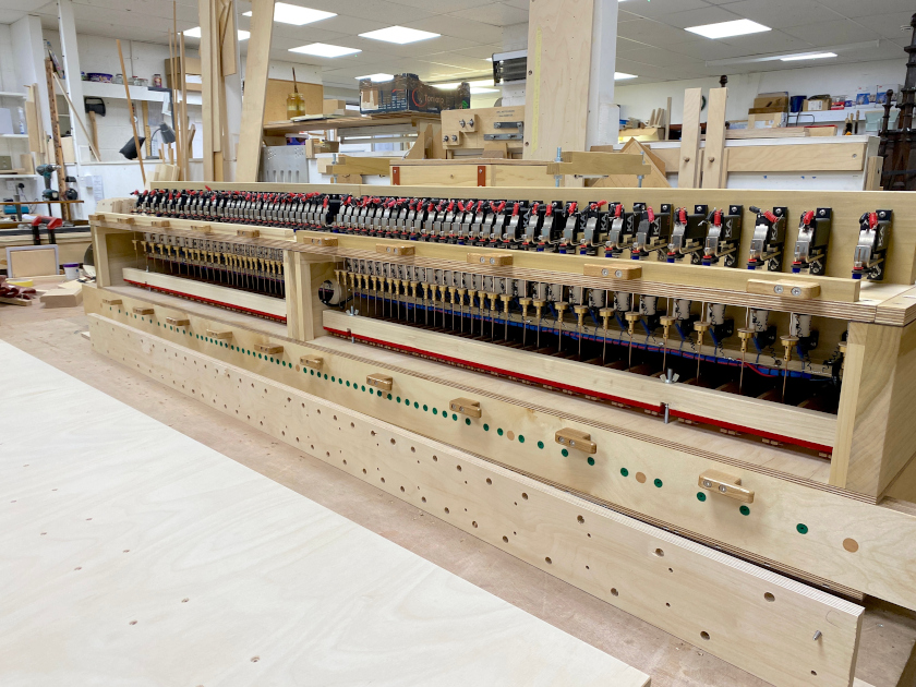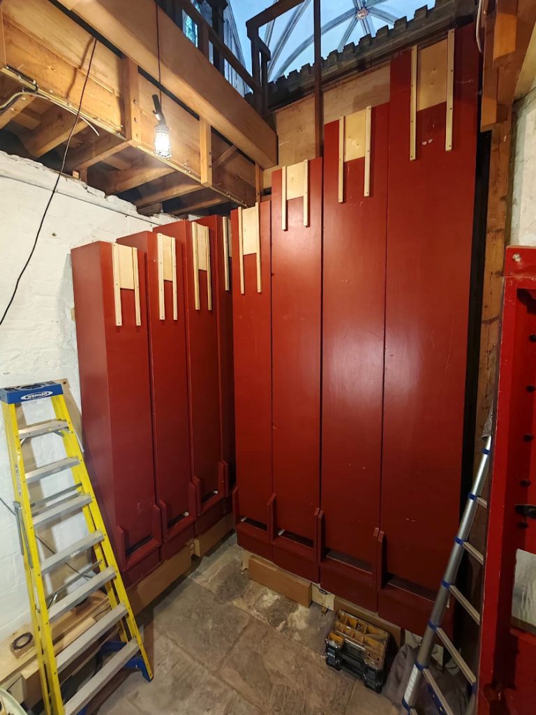 During the month I have been liaising with Nicholsons and Gloucester Cathedral about progress with the new organ, as I have been constantly since October 2024. The largest pipes (the 1831 Bishop Open Wood pipes, now restored) have recently been installed inside the Screen, the console has been started (note the linenfold panelling) and the Swell soundboard has just been finished. All the pipes are made, all the flues voiced, all the chests and wind system made, along with the Swell shutters and parts of the building-frame. Installation in earnest begins in January.
